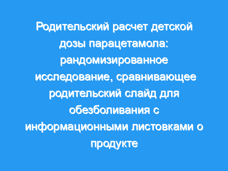 Сравнить способность родителей рассчитать и продемонстрировать правильную дозу, интервал и частоту приема парацетамола (ацетаминофена) для своего ребенка при использовании информационных листовок с информацией о продукте или родительского слайда для обезболивания.
