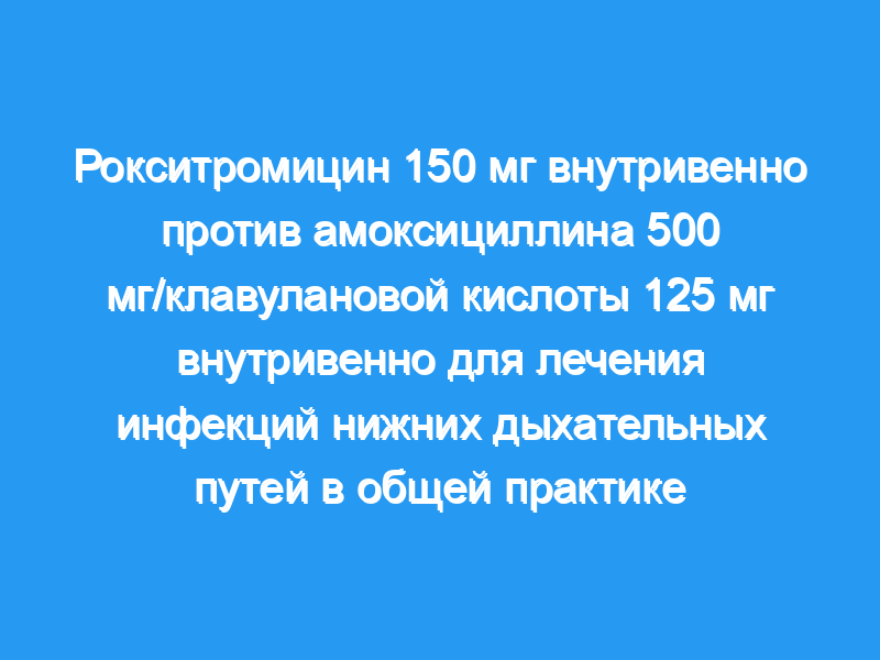 Двести сорок два пациента старше 16 лет с внебольничной инфекцией нижних дыхательных путей (ИРТИ), сопоставимые по возрасту и полу, были рандомизированы для получения либо рокситромицина в дозе 150 мг внутривенно