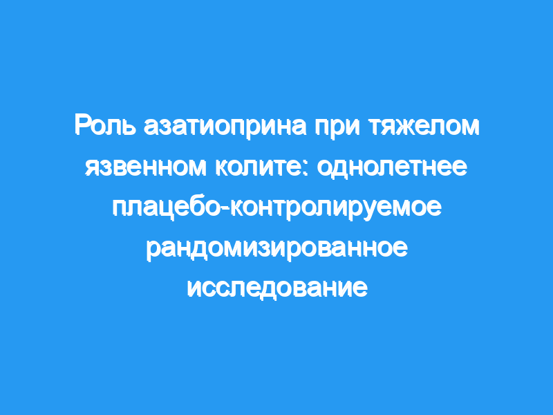 Изучить эффективность азатиоприна при лечении пациентов с тяжелым язвенным колитом. Дизайн: Однолетнее рандомизированное плацебо-контролируемое исследование. Субъекты: в исследование были включены 83 пациента с тяжелым язвенным колитом. Пятьдесят пациентов, у которых произошел рецидив в течение двух месяцев после отмены кортикостероидов, были рандомизированы на две группы. Группа азатиоприна получала пероральный сульфасалазин (6-8 г/сут), пероральный преднизолон (1 мг/кг/сут) и пероральный азатиоприн (2 мг/кг/сут). Группа плацебо получала пероральный сульфасалазин (6-8 г/сут), пероральный преднизолон (1 мг/кг/сут) и плацебо. Прием кортикостероидов снижался в течение 12-16 недель.
