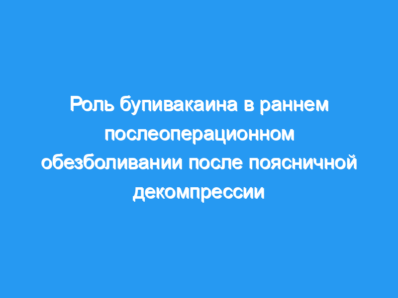 Объект: Авторы изучили эффект немедленного послеоперационного введения бупивакаина у пациентов, перенесших процедуру поясничной декомпрессии.