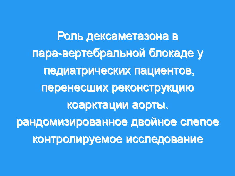Использование дексаметазона в качестве вспомогательного средства при паравертебральной блокаде под контролем ультразвука у детей, перенесших операцию по поводу коарктации аорты, увеличило продолжительность послеоперационной анальгезии с увеличением времени до первого обращения за анальгетиками, что также было связано с с уменьшением частоты послеоперационных осложнений. Пробная регистрация: Пробный регистрационный номер: NCT03074773 . (Перспективно зарегистрированный). Первоначальная дата регистрации была 9/3/2017.