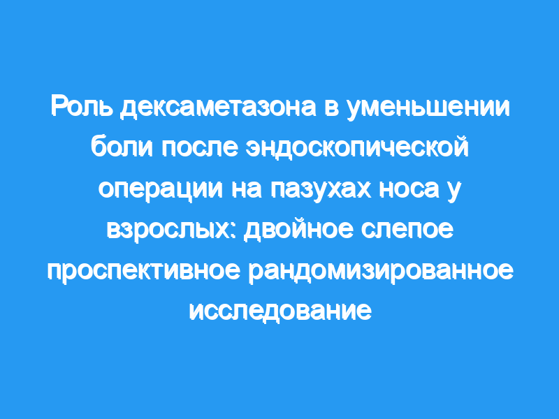 Мы стремились изучить послеоперационную боль после эндоскопической операции на синусах и оценить эффективность дексаметазона натрия фосфата в уменьшении боли и снижении потребности в анальгетиках.
