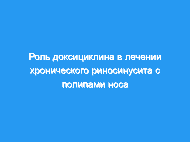 Существует множество теорий патофизиологии хронического риносинусита с полипозом носа (CRSwNP). Наиболее эффективное управление CRSwNP не было выяснено. Доксициклин, обладающий противовоспалительными и антибактериальными свойствами, продемонстрировал длительный эффект, однако его эффективность в сочетании со стандартной терапией не изучалась. Мы предположили, что его добавление к стандартному противовоспалительному режиму лечения улучшит результаты лечения пациентов.