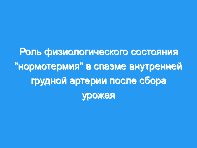 Со спазмом сосудов часто сталкиваются после оперативного препарирования внутренней грудной артерии. Для устранения этой проблемы используются различные сосудорасширяющие фармакологические средства. Во время препарирования внутренней грудной артерии теряются нормальные, местные и системные температуры. Мы стремились выяснить влияние этого снижения температуры на свободный поток внутренней грудной артерии.