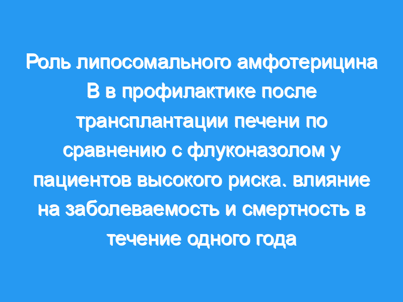 Грибковые инфекции по-прежнему являются одной из наиболее важных проблем у пациентов, перенесших трансплантацию печени, внося значительный вклад как в заболеваемость, так и в смертность. Было опубликовано несколько исследований, сравнивающих противогрибковые протоколы с точки зрения их воздействия на пациентов с трансплантацией печени (ОЛТ). Целью данного исследования была оценка влияния липосомального амфотерицина В по сравнению с профилактикой флуконазолом на заболеваемость и смертность после трансплантации печени.