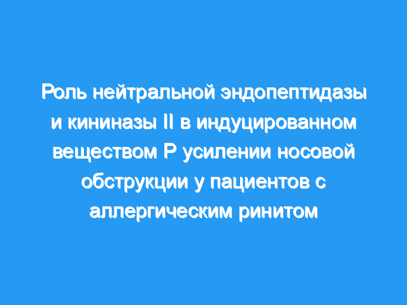 Мы изучили роль нейтральной эндопептидазы (NEP) и кининазы II (ангиотензинпревращающего фермента, АПФ) в модуляции индуцированной экзогенным веществом P (SP) назальной реакции у нормальных людей и у пациентов с аллергическим ринитом.