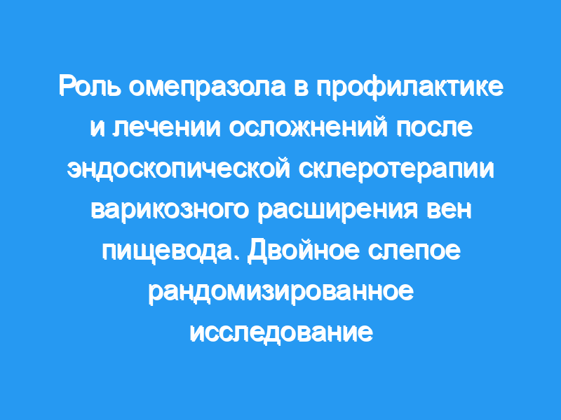Потенциальная эффективность омепразола в профилактике и лечении постсклеротерапевтических осложнений со стороны пищевода была оценена у 47 пациентов с портальной гипертензией в рандомизированном плацебо-контролируемом исследовании.Двадцать один пациент в группе омепразола и 23 пациента в группе плацебо завершили исследование.
