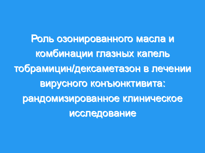 Проспективное, одиночное слепое рандомизированное исследование с параллельными группами. Восемьдесят пациентов с клиническим диагнозом предполагаемого вирусного конъюнктивита были рандомизированы на две группы лечения: основную группу и контрольную группу, по 40 человек в каждой группе. Пациенты в основной группе получали глазные капли тобрамицин 0,3%/ дексаметазон 0,1% для местного применения плюс глазные капли с озонированным маслом, оба четыре раза в день, пациенты в контрольной группе получали только глазные капли тобрамицин 0,3% /дексаметазон для местного применения четыре раза в день. Лечение в обеих группах продолжалось семь дней. Мазки брали из конъюнктивального свода для ПЦР-анализа на аденовирус в день набора и через семь дней наблюдения. Клинические признаки также регистрировались в день набора и при последующем обследовании: основными исходами были инъекции в конъюнктиву и химиотерапия конъюнктивы, оцененные по 4-балльной клинической шкале, наличие или отсутствие поверхностного точечного кератита и субэпителиальных инфильтратов роговицы.