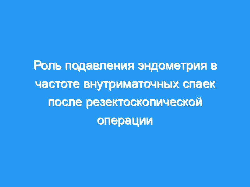 Внутриматочные спайки являются основным долгосрочным осложнением оперативной гистероскопии, частота которого зависит от первоначально пролеченной патологии. Повторная гистероскопия в кабинете является экономически эффективным методом диагностики и лизиса ВМС после резектоскопии.