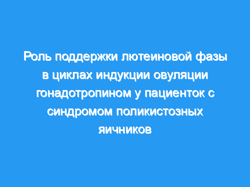 Оценить влияние поддержки прогестероном лютеиновой фазы на частоту наступления беременности у женщин с синдромом поликистозных яичников (СПКЯ), которые лечились от резистентного к кломифен цитрату ановуляторного бесплодия с индукцией овуляции и внутриматочной инсеминацией (OI/IUI). План исследования: В этом рандомизированном исследовании приняли участие 110 пациентов с резистентным к кломифен цитрату СПКЯ. Все пациентки прошли индукцию овуляции рекомбинантным фолликулостимулирующим гормоном и внутриматочную инсеминацию, до 3 циклов, и были рандомизированы на 2 группы: (1) лютеиновая поддержка прогестероном или (2) контрольная группа. Основными результатами были клинические показатели беременности и показатели живорождения за цикл.