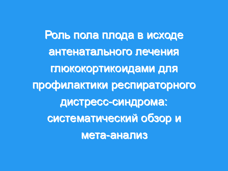 Рассмотреть имеющиеся данные о влиянии пола плода на профилактику RDS с использованием AGC. Метод: Мы провели систематический обзор и мета-анализ РКИ, чтобы сравнить влияние АРУ на младенцев мужского и женского пола в отношении частоты РДС, внутрижелудочковых кровоизлияний (ВЖК) III и IV степеней и неонатальной смертности. Случайные эффекты с 95% доверительными интервалами оценивались в обеих группах, а относительные риски сравнивались с использованием смешанной регрессии.