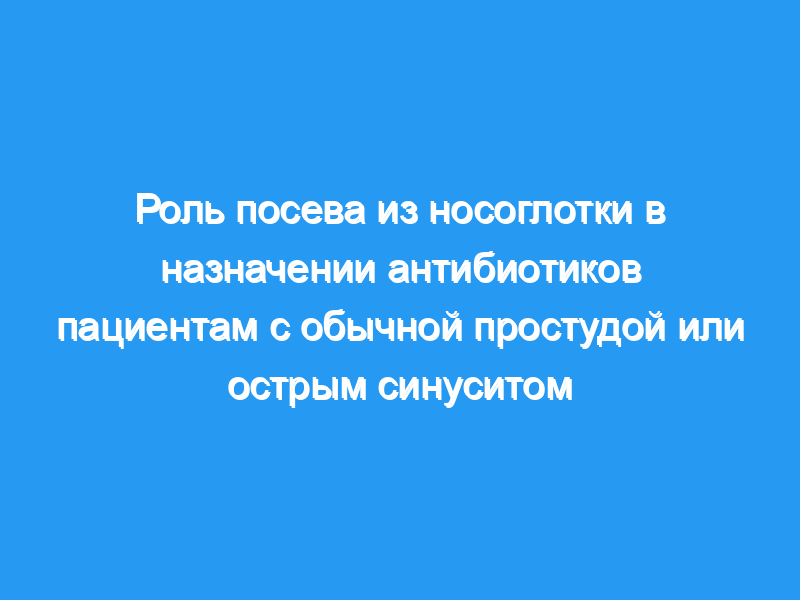 64% в группе азитромицина [P=0,75]). Лечение антибиотиками имеет клиническую пользу для пациентов с острым синуситом или обычной простудой, когда в секрете из носоглотки присутствуют Streptococcus pneumoniae, Haemophilus influenzae или Moraxella catarrhalis.