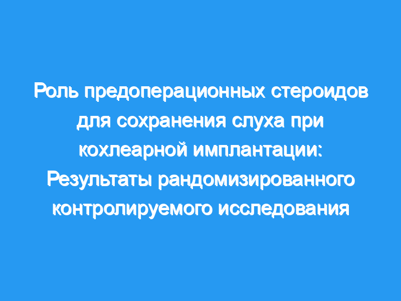 Это рандомизированное контролируемое исследование с участием 30 пациентов с постлингвальным глухим КИ. У субъектов были предоперационные пороговые значения, превышающие или равные 80 дБ при 125 и 250 Гц, и превышающие или равные 90 дБ при 500 и 1000 Гц. Пациенты были рандомизированы в контрольную группу, группу пероральных стероидов (получавших 1 мг/кг/день преднизолона в течение 6 дней до операции) или группу транстимпанических стероидов (получавших однократную дозу 0,5 мл 10 мг/мл дексаметазона за 24 часа до операции).