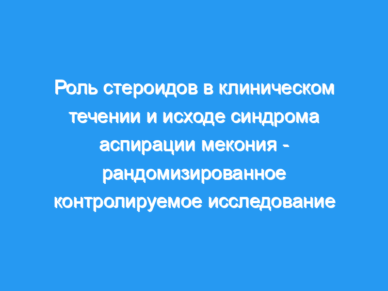 Рандомизированное контролируемое исследование было проведено в трех группах пациентов с МАС в течение 1 года. Группа A (n = 33) служила контролем, группа B (n = 34) получала системный метилпреднизолон, а группа C (n = 32) получала распыленный будесонид в течение 7 дней, начиная с 24-часового возраста. Подробности клинического прогресса были отмечены во время пребывания в больнице. Всего было проведено наблюдение в течение как минимум 3 месяцев. Данные были проанализированы с помощью программного обеспечения SPSS 10. Для оценки статистической значимости использовались t-критерий Стьюдента и ANOVA.