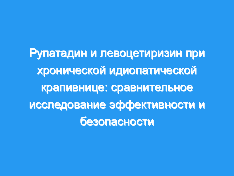 Хроническую идиопатическую крапивницу трудно лечить из-за ее стойких изнурительных симптомов. Антигистаминные препараты нового поколения являются первой линией лечения этого заболевания. Целью данного исследования является сравнение эффективности и безопасности рупатадина и левоцетиризина при хронической идиопатической крапивнице.