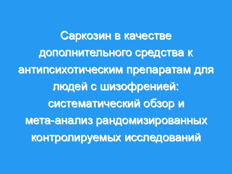N-метилглицин (саркозин) может улучшать симптомы шизофрении посредством модуляции NMDA-рецептора. Мы провели систематический обзор и мета-анализ, чтобы определить краткосрочную и долгосрочную эффективность саркозина при шизофрении.Дизайн и методы исследования: Был проведен поиск в базах данных Medline, Scopus, EMBASE, Cochrane Library и PsycINFO. Мы включили шесть независимых рандомизированных контролируемых исследований саркозина в качестве дополнительного лечения к текущим антипсихотическим препаратам, в которых приняли участие 234 взрослых участника с шизофренией, и представили данные о тяжести симптомов. Стандартизированные средние различия (SMD) использовались для оценки непрерывных результатов.