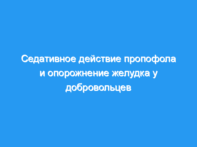 Десять здоровых добровольцев мужского пола были обследованы в 2 случаях с интервалом не менее 1 недели и были случайным образом распределены для получения либо седации пропофолом, либо внутривенного физиологического раствора в качестве контроля. Во время седации пропофолом добровольцы получали седативный эффект 2-3 степени по 5-балльной шкале. Это было достигнуто путем инфузии пропофола в дозе 5 мг кг(-1) ч(-1) первоначально, который затем был снижен до дозы 2,4+/-0,7 мг кг(-1) ч(-1). Абсорбцию парацетамола использовали в качестве косвенного показателя скорости опорожнения желудка, а ОКТ определяли с помощью водородного дыхательного теста после приема рафинозы. Использовался t-критерий Стьюдента для парных проб, и результаты представлены в виде средних значений+/-SD.