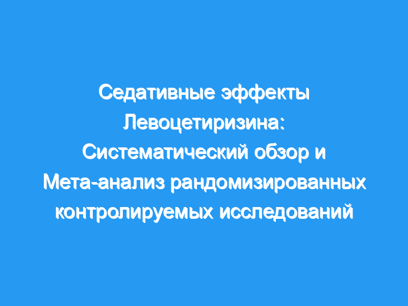 Целью данного исследования было изучение седативных эффектов левоцетиризина.