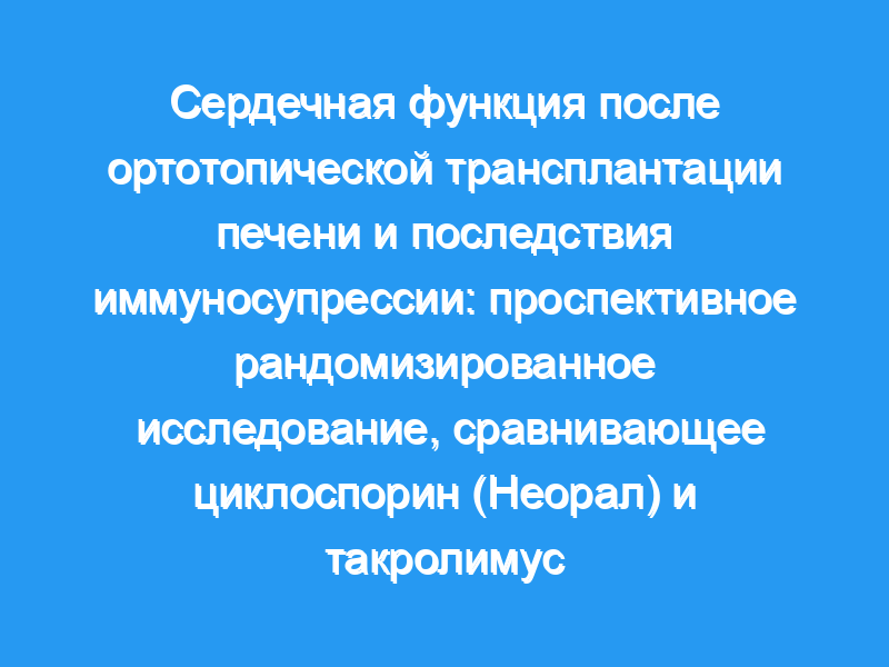 В этом исследовании мы исследовали сердечную функцию пациентов, получавших такролимус (Т). по сравнению с теми, кто получал иммуносупрессию циклоспорином (С) (Neoral, Novartis, Базель, Швейцария) после ОЛТ в проспективном рандомизированном исследовании tria.