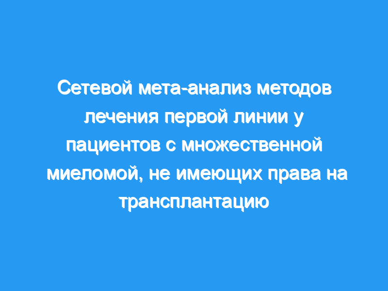 Множественная миелома (ММ) — сложное заболевание. Отсутствие прямых сравнений между методами лечения и включение новых альтернатив делают необходимым проведение исследований, позволяющих принимать клинические решения. Сетевой мета-анализ (NMA) был разработан для оценки сравнительной эффективности различных терапевтических альтернатив у недавно диагностированных пациентов с ММ, не имеющих права на трансплантацию.