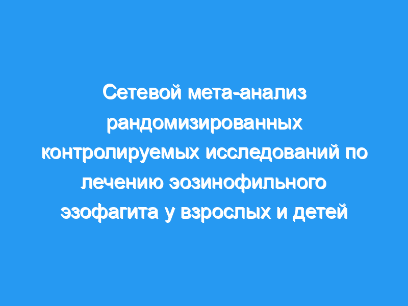 В метаанализ были включены семнадцать подходящих исследований (14 двухэтапных и 3 многоэтапных). В общей сложности был включен 1011 пациент, у которых было использовано 15 терапевтических вмешательств, а именно: (1) пероральная суспензия будесонида, (2) будесонид в таблетках, растворимых в воде, по 1 мг два раза в день, (3) будесонид в таблетках, растворимых в воде, по 2 мг два раза в день, (4) эзомепразол, (5) флутиказон, (6) распыленный стероид, (7) плацебо, (8) преднизон, (9) анти-IL-5-mab (меполизумаб), (10) анти-IL-5-mab [реслизумаб (1), т.е. 1 мг/кг], (11) анти-IL-5-mab [реслизумаб(2), т.е. 2 мг/кг], (12) анти-IL-5-mab [реслизумаб(3), т.е. 3 мг/кг], (13) анти-IL-13-mab (QAX 576), (14) анти-IL-13-mab [RCP 4046 (180)] и (15) анти-IL-13-mab [RCP 4046 (360)]. Будесонид в дозе 1 мг или в виде диспергируемой таблетки два раза в день показал самую высокую эффективность (SUCRA 0,91), тогда как плацебо было наименее эффективным. У взрослых пациентов будесонид в дозе 1 мг или растворимая таблетка два раза в день оставался оптимальным методом лечения, тогда как у педиатрических пациентов соответствующим терапевтическим подходом был флутиказон.