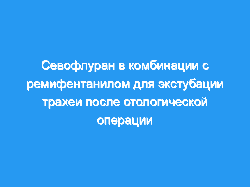 Севофлуран в сочетании с ремифентанилом обеспечивал быстрое выздоровление и оказался безопасным для экстубации трахеи под глубокой анестезией у взрослых пациентов после отологических операций.