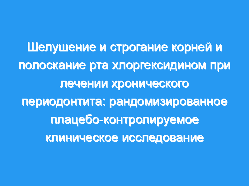 Было проведено слепое плацебо-контролируемое рандомизированное клиническое исследование с параллельным дизайном у 29 пациентов с хроническим периодонтитом. Испытуемых распределили на две терапевтические группы: контрольную (SRP+плацебо) и тестовую (SRP+CHX во время и до 42 дней после терапии). Клинические и микробиологические исследования [N-бензоил-dl-аргинин-2-нафтиламид (тест BANA)] были проведены в начале лечения, через 42 и 63 дня после терапии.