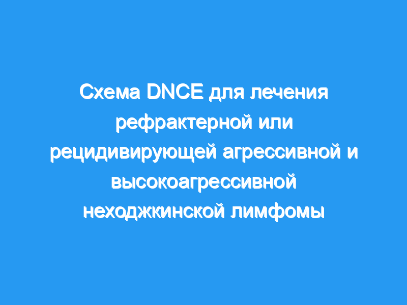 Эффективность режима DNCE так же хороша, как и режим DICE, а токсичность костного мозга менее выражена в группе DNCE, чем в режиме DICE. Таким образом, схема DNCE является эффективной схемой спасения второй линии для лечения рефрактерной или рецидивирующей агрессивной и высокоагрессивной неходжкинской лимфомы.