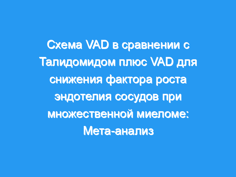 Схема VAD (винкристин-доксорубицин-дексаметазон) десятилетиями использовалась для лечения множественной миеломы (ММ). Основываясь на сообщениях о том, что ангиогенез, опосредованный фактором роста эндотелия сосудов (VEGF), имеет решающее значение для патогенеза ММ, к VAD (T-VAD) было добавлено антиангиогенное соединение талидомид.). Однако остается неясным, является ли T-VAD более эффективным, чем VAD, для снижения уровня VEGF в сыворотке крови или разница влияет на клинические результаты.
