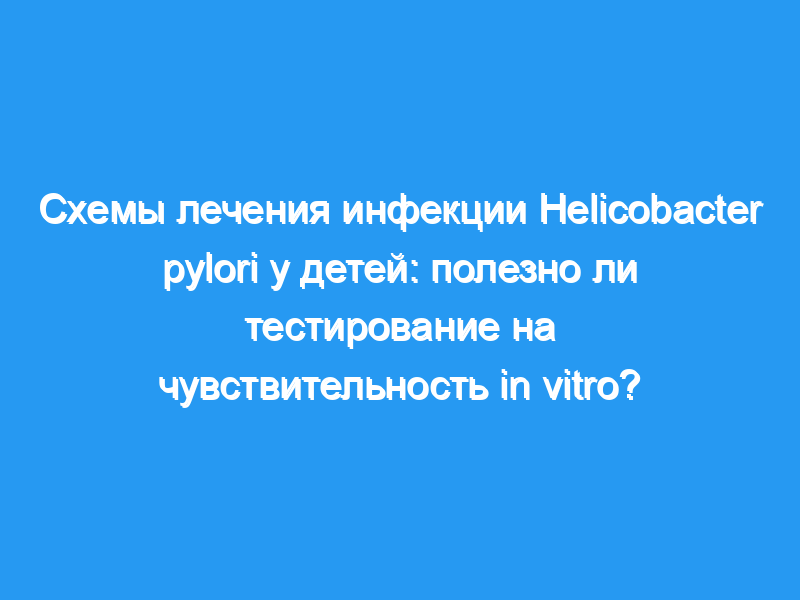 Оценить эффективность двух схем лечения для эрадикации H. pylori и влияние тестирования на чувствительность к бактериям. План исследования: 265 детей, у которых эндоскопически была диагностирована инфекция H. pylori, были рандомизированы на прием омепразола + амоксициллина с кларитромицином или омепразола + амоксициллина с метронидазолом. Бактериальный посев и определение чувствительности проводили в подгруппе. Эрадикацию оценивали с помощью дыхательного теста с мочевиной.