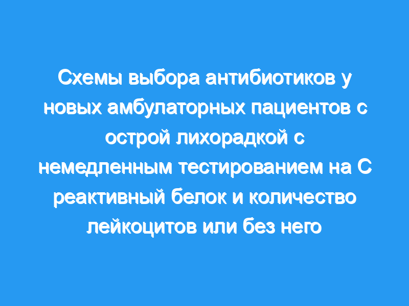 Чрезмерное использование антибиотиков широкого спектра действия связано с распространением штаммов бактерий, устойчивых к лекарственным средствам, в сообществе. Цель/методы: У пациентов с острой инфекцией было исследовано влияние немедленного тестирования на С-реактивный белок (СРБ) и количество лейкоцитов (лейкоцитов) на выбор врачом антибиотика. Новые амбулаторные пациенты с острой лихорадкой были рандомизированы на две группы: 1-я группа (147 пациентов) прошла тестирование на СРБ и лейкоциты перед первичной консультацией (предварительное тестирование). Рецепты сравнивались с рецептами в группе 2 (предварительное тестирование не проводилось, 154 пациента).