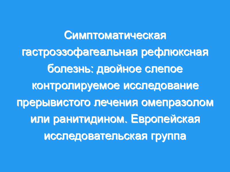 Оценить прерывистое лечение в течение 12 месяцев у пациентов с симптоматической гастроэзофагеальной рефлюксной болезнью. Дизайн: Рандомизированное, многоцентровое, двойное слепое, контролируемое исследование. Пациенты с изжогой и нормальными результатами эндоскопии или легкими эрозивными изменениями получали омепразол в дозе 10 мг или 20 мг ежедневно или ранитидин в дозе 150 мг два раза в день в течение 2 недель. Пациентам, у которых сохранялись симптомы, доза омепразола в дозе 10 мг или ранитидина удваивалась еще на 2 недели, в то время как прием омепразола в дозе 20 мг продолжался в течение 2 недель. Пациенты с симптомами или умеренными симптомами находились под наблюдением в течение 12 месяцев. Рецидивы умеренной или тяжелой изжоги во время наблюдения лечили дозой, которая была успешной для первоначального контроля симптомов.