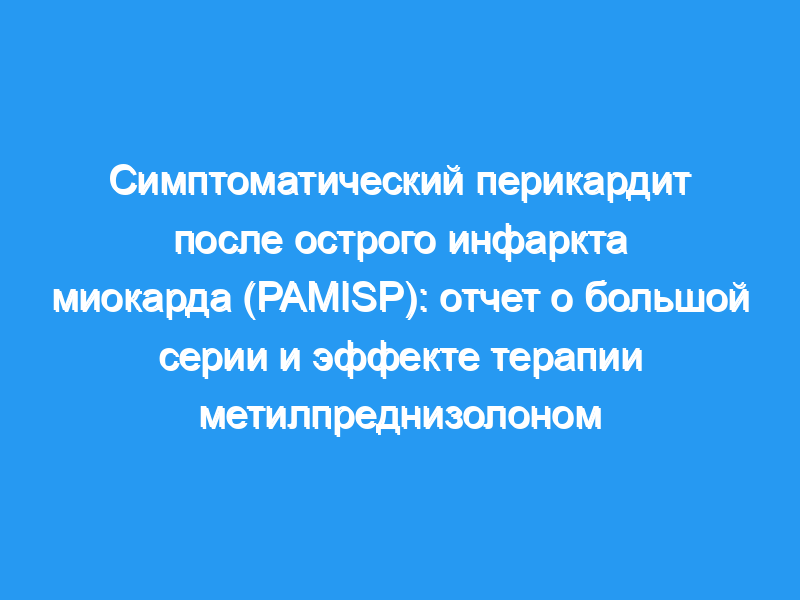7,5% пациентов, получавших MPSS и у 18,5% пациентов, получавших плацебо, был симптоматический перикардит после острого инфаркта миокарда (PAMISP) (р менее 0,001). Пациенты, получавшие MPSS, нуждались в меньшей терапии для своего PAMISP, а предварительная обработка MPSS ослабляла и ограничивала PAMISP. Пациенты, перенесшие PAMISP, не отличались по возрасту или полу от пациентов без PAMISP, но имели в 3,4 раза большую частоту передних острых инфарктов миокарда (ОИМ). Также проведен обзор литературы, чтобы показать, что MPSS является полезным вмешательством при PAMISP и других перикардитах.