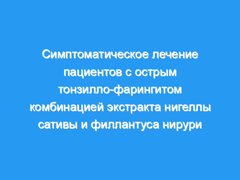 Также было обнаружено, что экстракт NSPN безопасен и хорошо переносится при остром тонзиллофарингите. пациент.