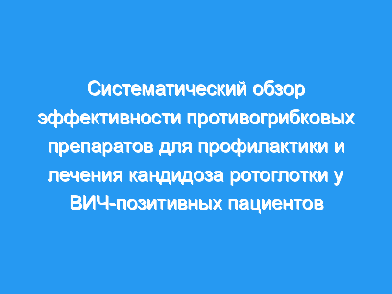 Систематический обзор рандомизированных клинических исследований, опубликованных в период с 1966 по апрель 2000 года, был проведен с целью определения убедительности доказательств эффективности противогрибковых препаратов (нистатин, клотримазол, амфотерицин В, флуконазол, кетоконазол и итраконазол) для профилактики и лечения кандидоза полости рта у пациентов, инфицированных вирусом иммунодефицита человека. Дизайн исследования: Автоматизированный поиск в базе данных выявил 366 статей. Шесть соответствовали критериям включения и исключения в отношении профилактики, 12 соответствовали критериям лечения кандидоза полости рта.