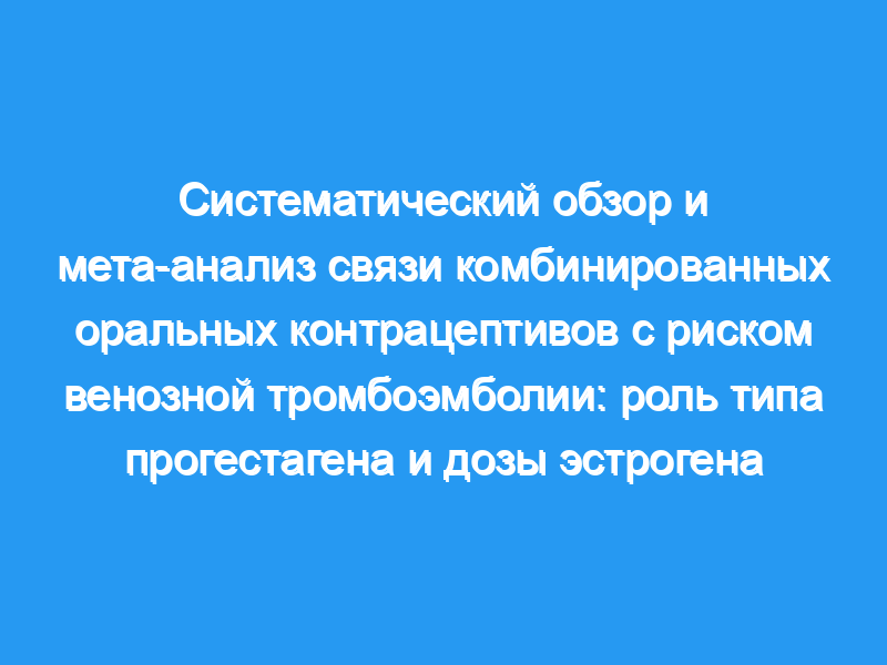 В целом было выявлено 1359 ссылок и 17 исследований были включены в мета-анализ. Объединенный RR ВТЭ был связан с различными КОК, причем связь зависела от их соответствующей дозы эстрогена и типа прогестагена. По сравнению с эталонным левоноргестрелом с 30-40 мкг этинилэстрадиола общий риск ВТЭ был выше для всех других КОК. Препараты с дезогестрелом с 30-40 мкг эстрогена показали самый высокий относительный риск (ОР: 1,46, 95% ДИ: 1,33-1,59), в то время как ОР для дроспиренона (30-40 мкг этинилэстрадиола) и дезогестрела (30-40/20 мкг этинилэстрадиола) были ниже. КОК, содержащие гестоден и ципротерон с 30-40 мкг эстрогена, показали наименьший риск (ОР: 1,27, 95% ДИ: 1,15-1,41 и ОР: 1,29, 95% ДИ: 1,12-1,49 соответственно).