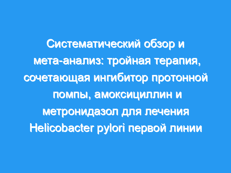 Целью данного исследования была оценка эффективности тройной терапии, включающей ингибитор протонной помпы (ИПП), амоксициллин и метронидазол (ПАМ) в качестве терапии H. pylori первой линии путем систематического обзора и мета-анализа.