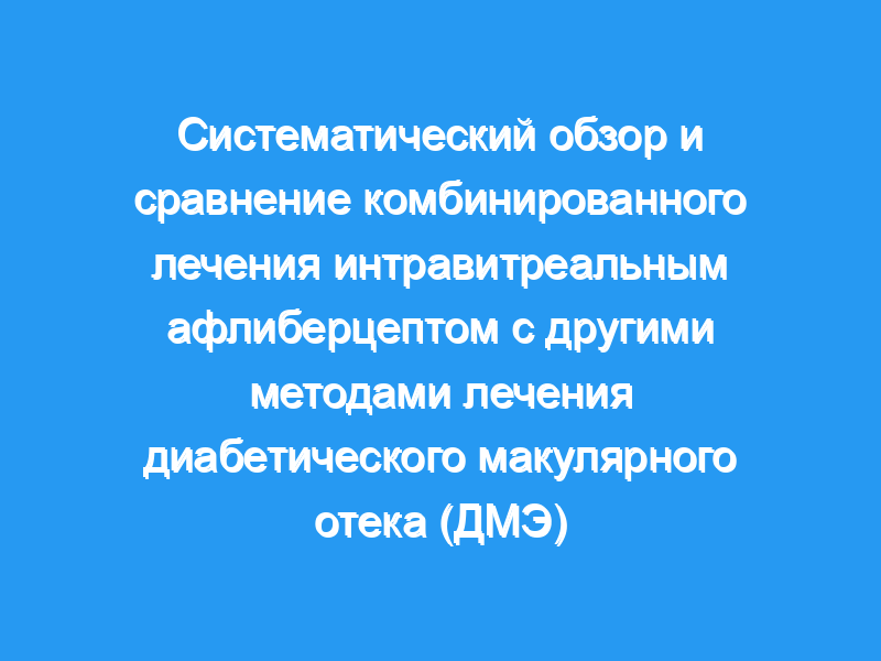 Это было косвенное сравнение эффективности интравитреального афлиберцепта (IVT-AFL) по 2 мг каждые 8 недель после 5 начальных месячных доз (или, если разные периоды, после начального месячного периода дозирования) (2q8) и других методов лечения диабетического макулярного отека (DME) в дозах, лицензированных за пределами США..