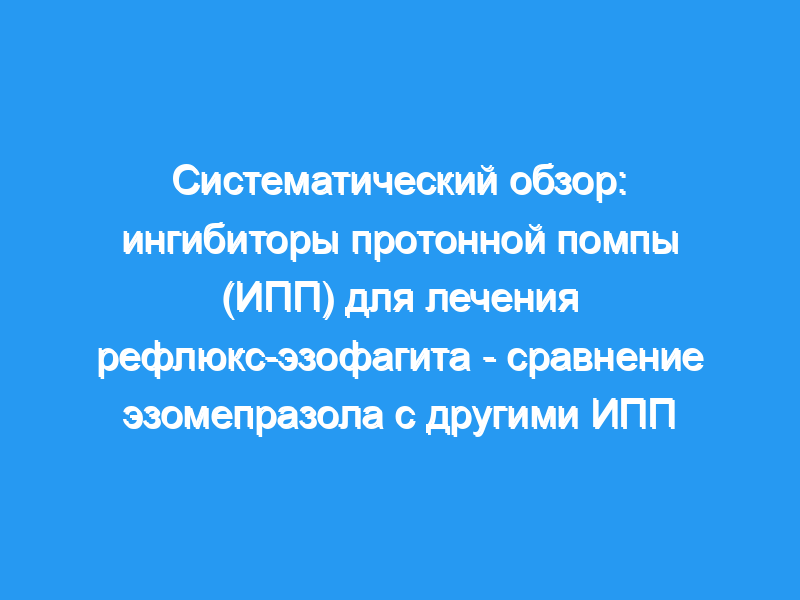 Сравнить эффективность эзомепразола с лицензированными ингибиторами протонной помпы в стандартной дозе для лечения рефлюкс-эзофагита (например, лансопразол 30 мг, омепразол 20 мг, пантопразол 40 мг и рабепразол 20 мг).