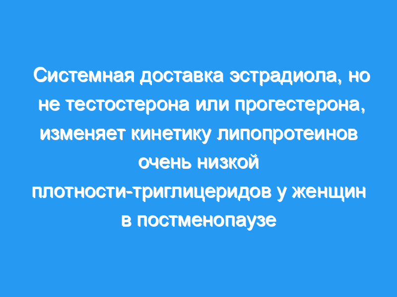 Целью данного исследования была оценка влияния системно вводимых 17β-эстрадиола, прогестерона и Т на концентрацию и кинетику липопротеинов-триглицеридов очень низкой плотности (ЛПОНП-ТГ) у женщин в постменопаузе. Установка и дизайн: Концентрацию и кинетику ЛПОНП-ТГ оценивали с использованием методов отслеживания, меченных стабильными изотопами, в четырех группах женщин в постменопаузе (всего n = 27), которые были обследованы до и после лечения 17β-эстрадиолом (0,1 мг/сут через кожный пластырь непрерывной доставки), прогестероном (100 мг/сут через вагинальный вкладыш) и T (12,5 мг/сут через гель для кожи) или без вмешательства (контрольная группа).
