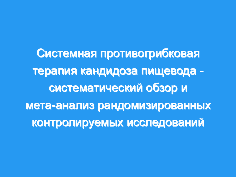 Был проведен систематический обзор и мета-анализ рандомизированных контролируемых исследований (РКИ), посвященных системной противогрибковой терапии кандидоза пищевода. Первичным результатом был клинический ответ. Анализ подгрупп был запланирован на основе иммунного статуса и Candida spp.
