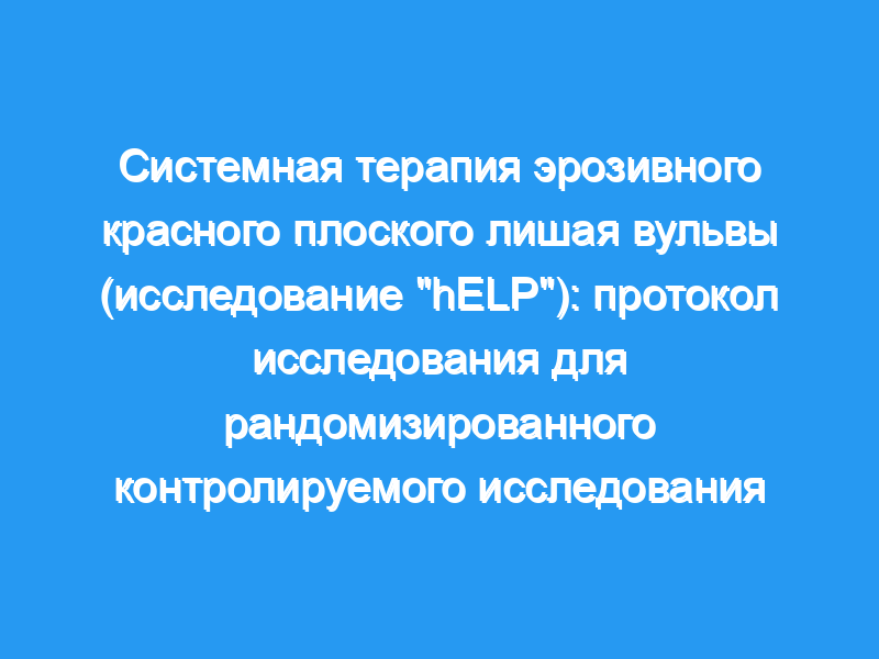 Эрозивный красный плоский лишай, поражающий вульву (ELPV), является относительно редким хроническим заболеванием, вызывающим болезненные воспаленные участки в вульвовагинальной области. Симптомами являются боль и жжение, которые влияют на повседневную жизнь. Существует мало фактических данных относительно терапии. Кокрейновский систематический обзор 2012 года не выявил рандомизированных контролируемых исследований (РКИ) в этой области. Кортикостероиды, назначаемые местно, являются общепринятой терапией первой линии: однако существует неопределенность относительно того, какие методы лечения второй линии следует использовать. Клинически было отмечено, что несколько системных препаратов перспективны для лечения ELPV, рефрактерного к местному введению кортикостероидов, но нет данных РКИ, подтверждающих это. Исследование «hELP» представляет собой РКИ с внутренней пилотной фазой, предназначенной для получения высококачественных фактических данных. Методы/дизайн: Цель состоит в том, чтобы проверить, является ли системная терапия в дополнение к стандартной местной терапии эффективным средством второй линии лечения ELPV. В качестве дополнительной системной терапии используются гидроксихлорохин, метотрексат, микофенолат мофетил и преднизолон. Местная терапия плюс короткий курс перорального приема преднизолона считаются вспомогательным вмешательством. Исследование представляет собой четырехрукое, открытое, прагматичное РКИ, в котором используется слепой независимый клинический эксперт. Чтобы обеспечить 80% мощности для каждого сравнения, в общей сложности требуется 96 участников. Цель пилотного этапа — набрать 40 участников. Первичный клинический результат — это доля пациентов, достигших успеха в лечении через 6 месяцев. «Успех» определяется совокупным показателем Общей оценки пациента, равным 0 или 1 баллу по 4-балльной шкале, плюс улучшение по сравнению с исходным уровнем на клинических фотографиях, полученное врачом, слепым к распределению лечения. Вторичные клинические результаты включают 6-месячную оценку: (1) Уменьшения боли/болезненности, (2) Глобальной оценки заболевания, (3) Реакции на других пораженных участках слизистой оболочки, (4) Оценки по шкале тревоги и депрессии в больнице, (5) Сексуальная функция, (6) Качество, связанное со здоровьем жизни с использованием вопросников «Краткая форма 36» и «Skindex-29», (7) Дней местного применения стероидов, (8) Удовлетворенность лечением, (9) Прекращение приема лекарств из-за неэффективности лечения, (10) Стоимость вмешательства на одного участника в каждой группе лечения. Также будут сообщаться о нежелательных явлениях.