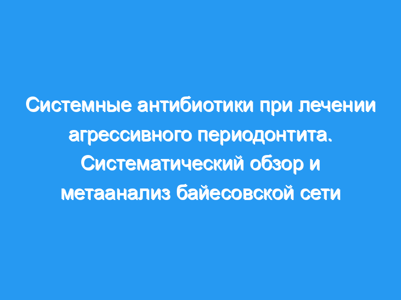 Из 350 выявленных работ 14 исследований были допущены к участию. Больший прирост клинического прикрепления (CA) (средняя разница [MD]: 1,08 мм, p <, 0,0001) и уменьшение глубины зондирования (PD) (MD: 1,05 мм, p <, 0,00001) наблюдались для SRP + метронидазол (Mtz), а для SRP + Mtz + амоксициллин (Amx) (MD: 0,45 мм, MD: 0,53 мм соответственно, p <, 0,00001), чем только SRP/плацебо. Метаанализ байесовской сети показал дополнительные преимущества в увеличении CA и снижении PD, когда SRP был связан с системными антибиотиками.
