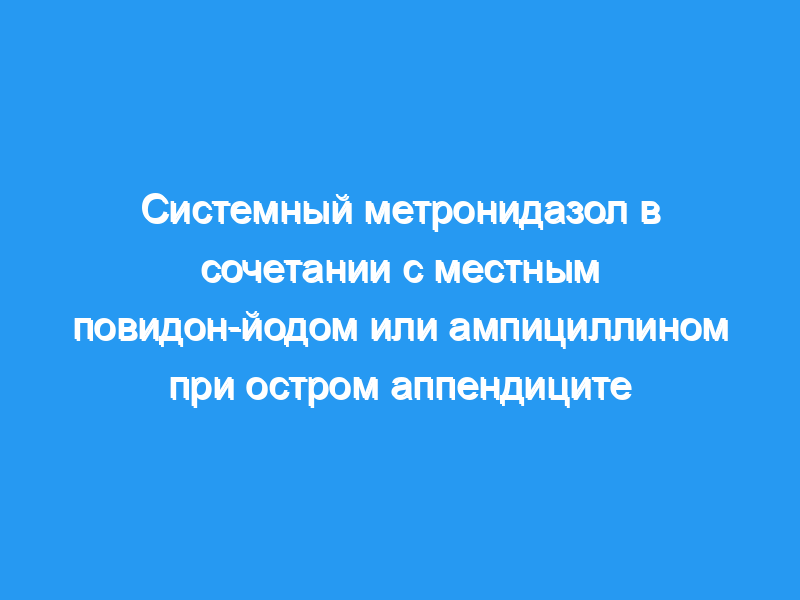 Были изучены сто последовательных пациентов, перенесших аппендицэктомию либо планово, либо по поводу клинически диагностированного острого аппендицита, чтобы изучить разницу между применением местного повидон-йода (PVP-I) и ампициллина в ране, введенного во время закрытия раны.