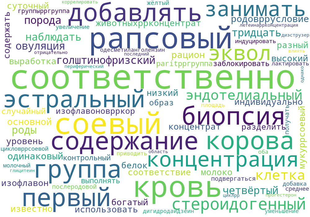 Соевая мука добавка к лактирующим молочным коровам (в среднем 1,72 кг) индуцировала увеличение концентрации эквола, дигидродаидзеина, о-десметиланголензина в крови в обеих группах сои и приводила к уменьшению площади, занимаемой стероидогенными (Р=0,012) и эндотелиальными клетками (Р=0,0007) в биопсии лютеина.