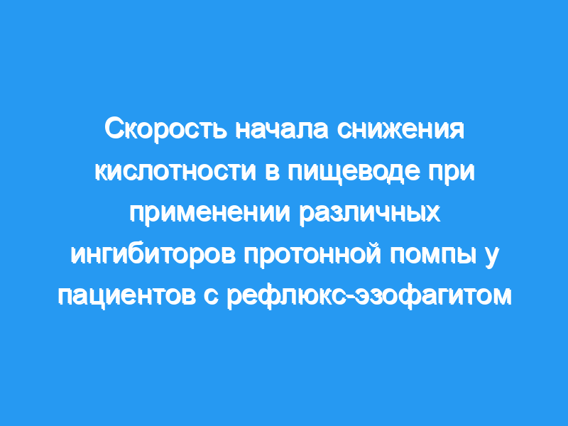 Ингибиторы протонной помпы являются наиболее эффективным лекарственным средством для лечения гастроэзофагеальной рефлюксной болезни. В связи с растущей тенденцией к терапии «по требованию» важно определить, насколько быстро уменьшается кислотный рефлюкс пищевода и отличается ли это между доступными соединениями. Дизайн: Двойное слепое перекрестное исследование 2 х 2. Способ: Восьми пациентам с эзофагитом Савари-Миллера II степени перед началом лечения был проведен 24-часовой мониторинг рН пищевода. Каждый пациент был случайным образом распределен для ежедневного приема омепразола в дозе 20 мг и лансопразола в дозе 30 мг в течение 2 дней в два отдельных двойных слепых периода с периодом вымывания 14 дней. Во время второго 48-часового периода лечения каждым препаратом были получены еще две записи рН пищевода.