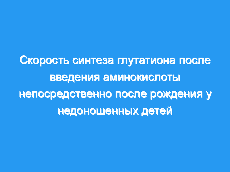 Целью исследования было определить влияние введения аминокислот непосредственно после рождения на скорость синтеза глутатиона и маркеры окислительного стресса. Схема: Недоношенные дети (<, 1500 г) получали с рождения либо декстрозу (контрольная группа, n = 10), либо декстрозу плюс 2,4 г аминокислот. кг (-1). d(-1) (группа вмешательства, n = 10). На 2-й день после рождения вводили [1-(13)C]глицин для определения фракционных скоростей синтеза глутатиона (FSR(GSH)) и абсолютных скоростей синтеза (ASR(GSH)) в эритроцитах. В плазме крови были измерены продукты повышенного окисления белка и дитирозин, оба маркера окислительного стресса. Результаты выражены в виде средних значений +/- SDs.