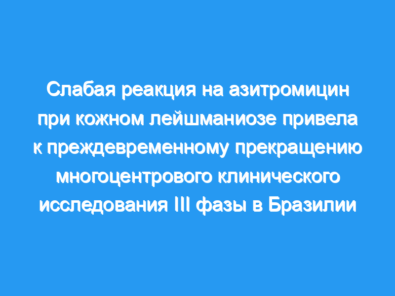 Выводы Азитромицин неэффективен для лечения CL и, по-видимому, не играет роли в терапевтическом арсенале для CL.