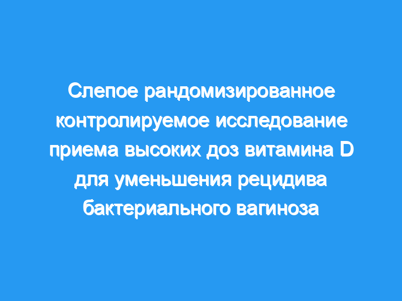 Низкий уровень витамина D в сыворотке крови был связан с повышенной распространенностью заболевания репродуктивного тракта — бактериального вагиноза (БВ). Целью этого исследования было оценить влияние приема высоких доз витамина D на рецидив БВ. План исследования: В этом рандомизированном, плацебо-контролируемом двойном слепом исследовании приняли участие 118 женщин с симптоматическим БВ из городской клиники заболеваний, передающихся половым путем (clinicaltrials.gov регистрационный номер NCT01450462). Все участники получали 500 мг перорального метронидазола два раза в день в течение 7 дней. Участники вмешательства (n = 59) также получали 9 доз холекальциферола (витамина D3) по 50 000 МЕ в течение 24 недель, женщины контрольной группы (n = 59) получали соответствующее плацебо. Рецидивирующий БВ оценивали по шкале Ньюджента через 4, 12 и 24 недели. Мы оценили эффект вмешательства, используя подход «намерение лечить», применив модели пропорциональных рисков Кокса для оценки рецидива БВ в течение периода наблюдения.
