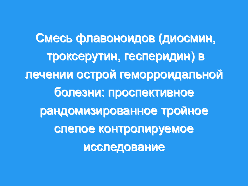 Применение смеси диосмина, троксерутина и гесперидина является безопасным и эффективным средством лечения симптомов острого геморроидального заболевания. Кроме того, у пациентов, получавших лечение, наблюдался более быстрый контроль и меньшая персистенция отека и тромбоза.